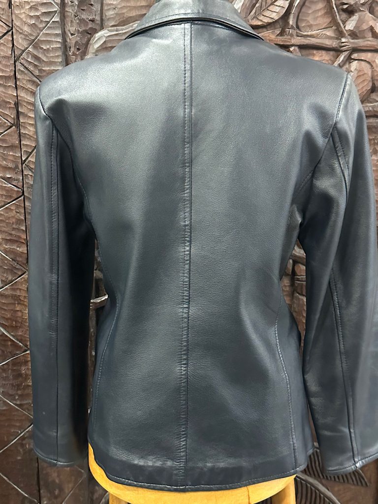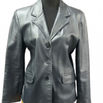 Veste style blazer en cuir noir.